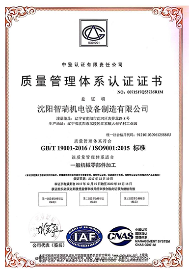 质量管理体系认证证书
